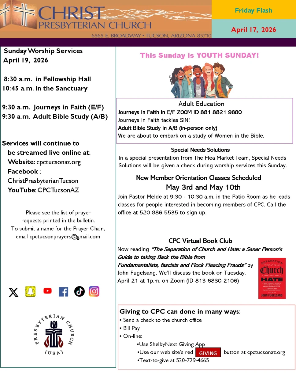 As a community of faith, and as individual believers, CPC is a part of the body of Christ, striving to be and become faithful to God’s grace in Jesus Christ.